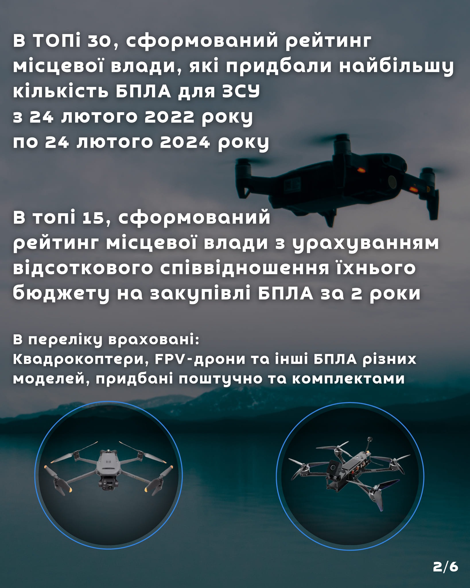 Детальний перелік громад та адміністрацій, які купували БПЛА можна переглянути в інфорафіці.