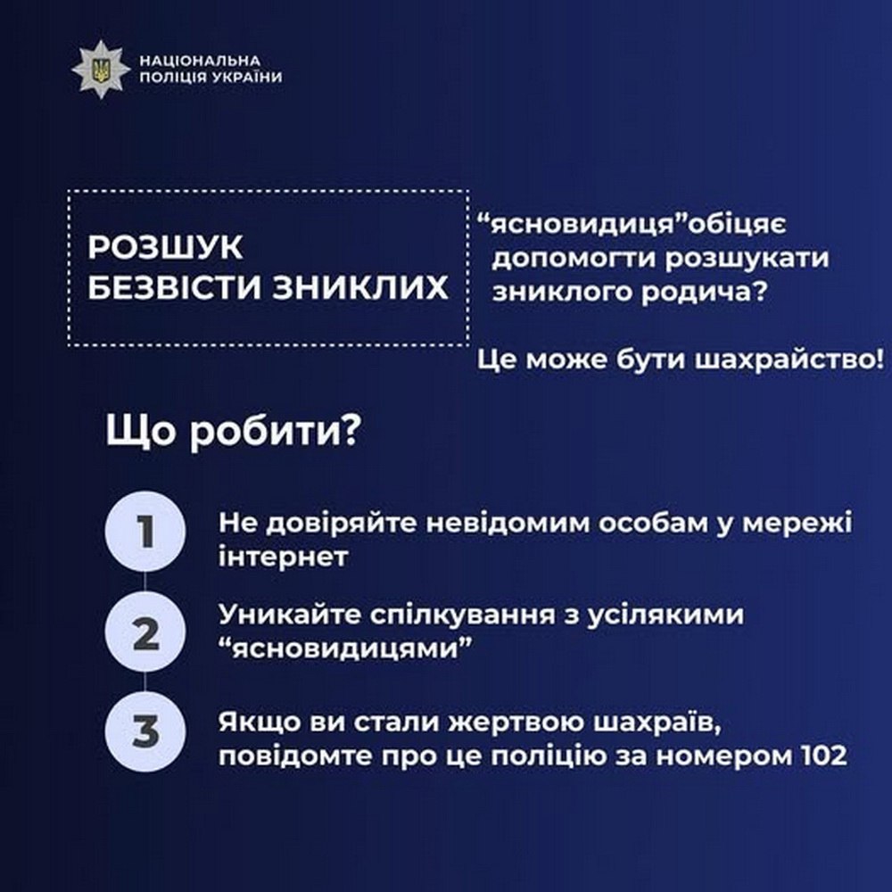 «Ясновидиця» видурила чималі заощадження у жительки Коломийщини. Аферистка запевнила потерпілу, що допоможе знайти чоловіка-військовослужбовця, який не виходить на зв’язок. Слідчі за цим фактом проводять розслідування та заходи з розшуку шахрайки.