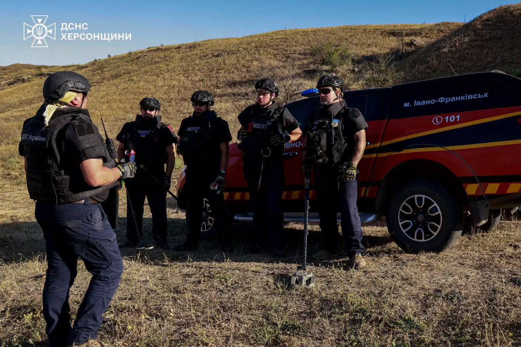 Під пекучим сонцем півдня сапери ДСНС збирають «урожай» війни — нерозірвані боєприпаси.