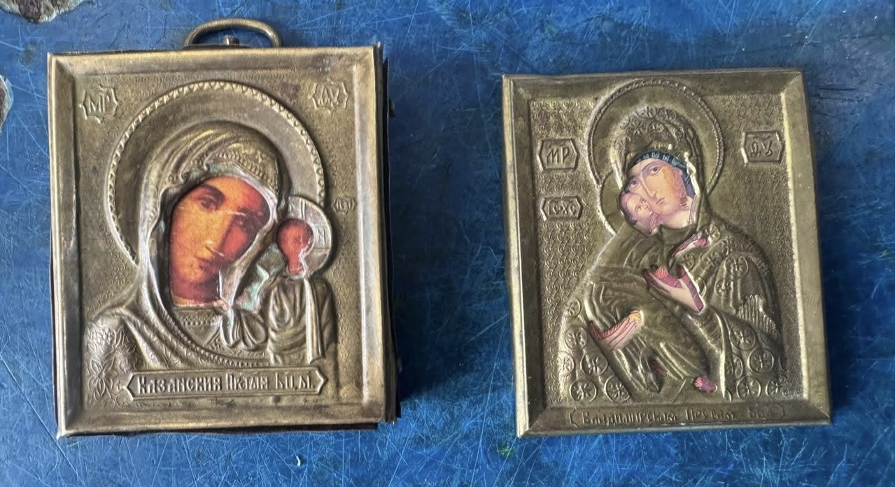 Серед знайденого – кількасот старовинних фотокарток із зображенням нацистських лідерів та військової техніки, ікони Казанської та Володимирської Божої Матері в металевій оправі, а також кілька медалей різних періодів.