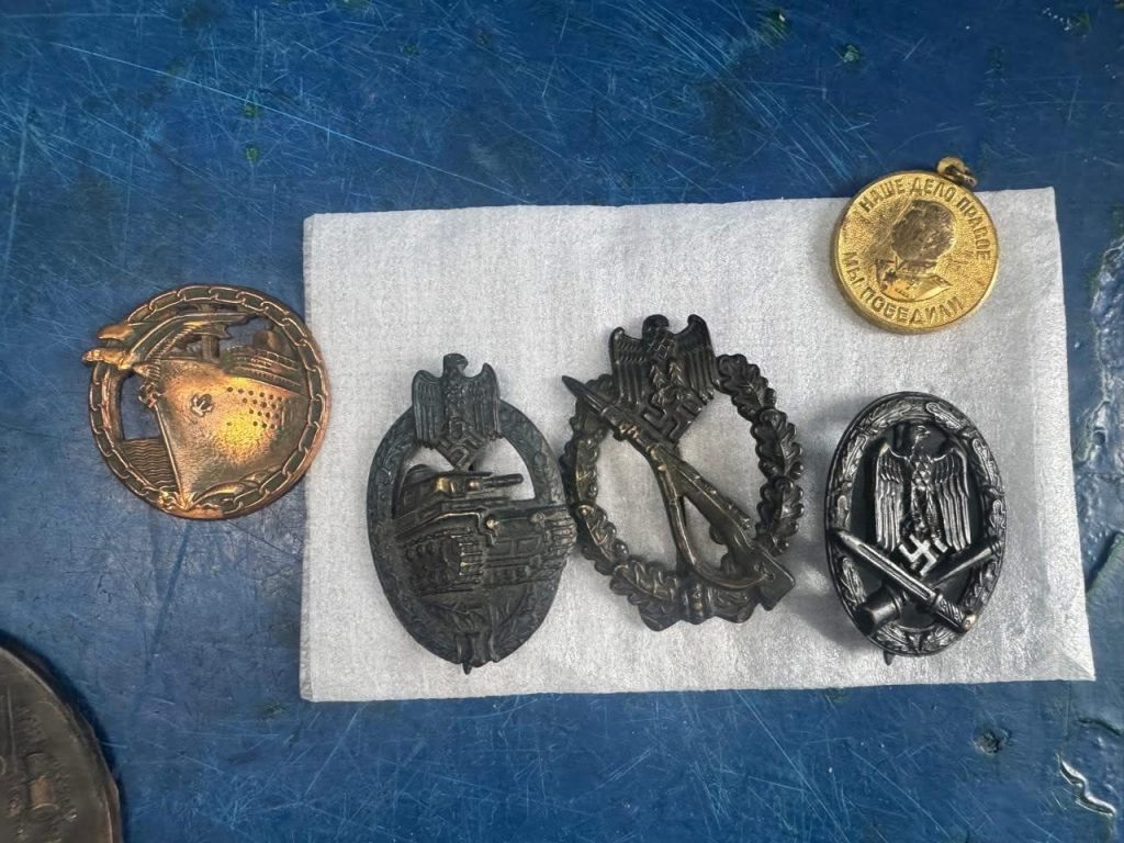 На них зображені князь Ігор, князь Дмитро Донський, імператриця Катерина ІІ, символіка російської артилерії. Є серед виявленого й відзнаки радянського періоду і нагрудні знаки з нацистською символікою.