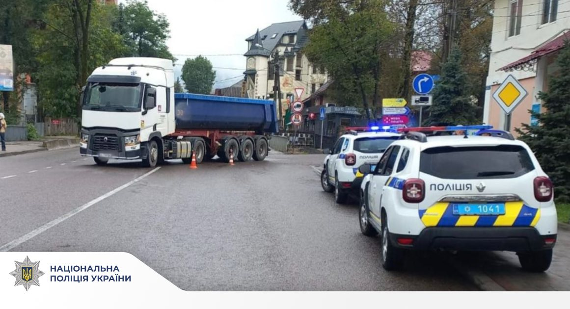 Попередньо правоохоронці встановили, що 68-річний мешканець Надвірнянського району, керуючи вантажним сідловим тягачем «RENAULT», виїжджаючи з другорядної дороги на головну, здійснив наїзд на жінку.