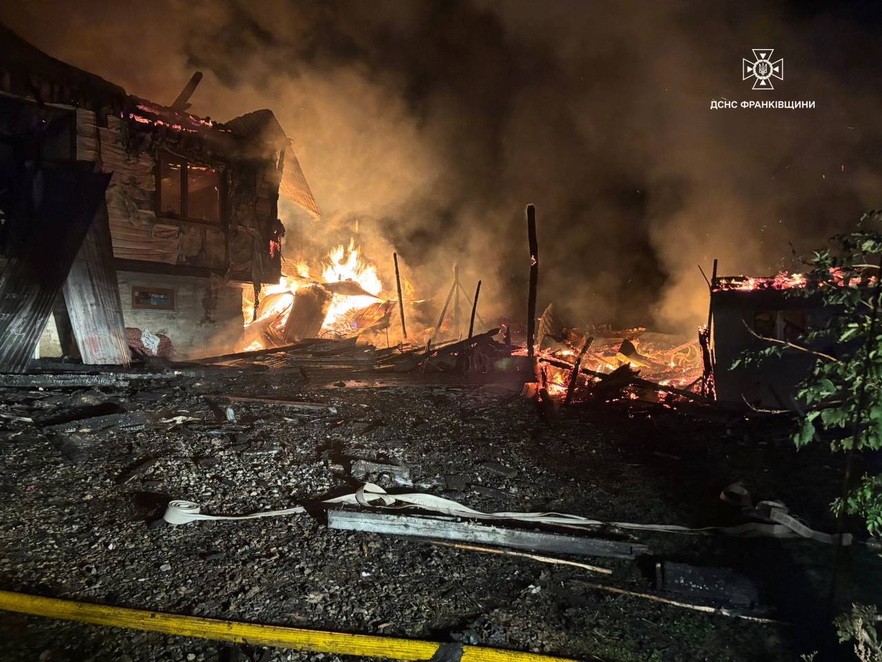 До місця виклику оперативно було направлено рятувальників, які по прибуттю встановили, що горів житловий будинок та господарська будівля на території приватного домогосподарства. Загальна площа пожежі склала близько 200 м². На місці події травмувались 4 людей.