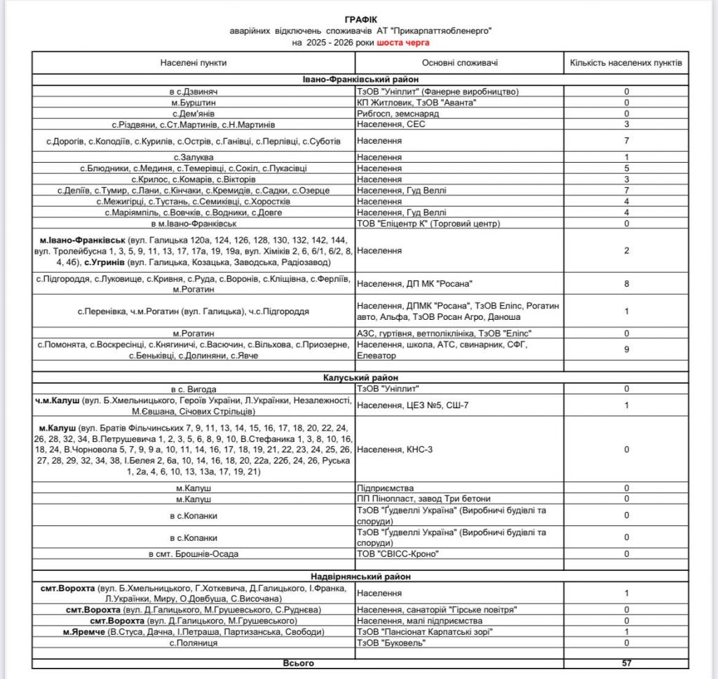 Зауважте! Оскільки вимкнення аварійні, попередити заздалегідь, як і знати їхню тривалість, неможливо!