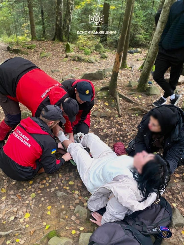 16 жовтня юдо Служби порятунку надійшло повідомлення про те, що під час спуску з гори Маковиця, поблизу міста Яремче, жінка — мешканка Полтавської області — травмувала нижню кінцівку та не може самостійно пересуватись.