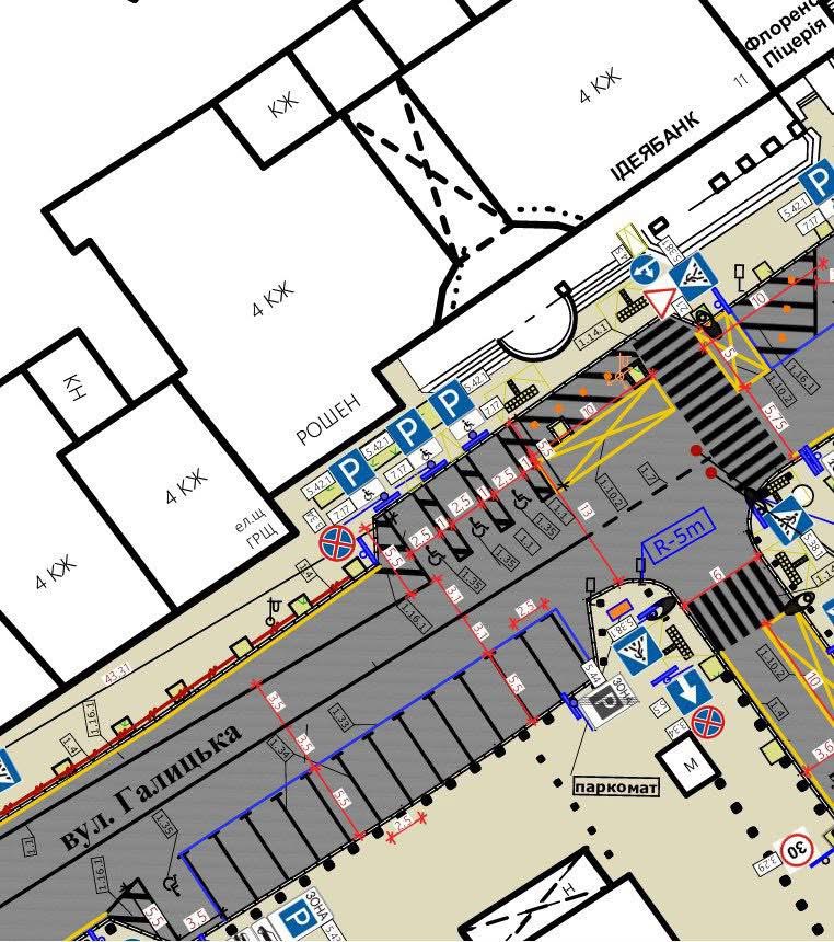 У межах нової схеми також облаштують пішохідний перехід через вул. Галицьку на перехресті з вул. Мартинця. Загалом нові схеми мають впорядкувати систему паркування на центральних вулицях міста.