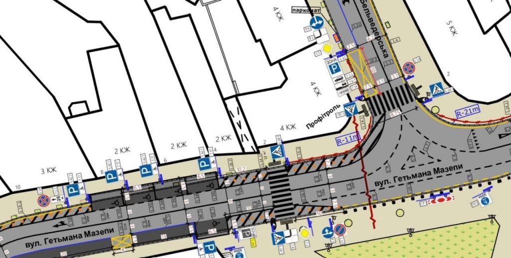 - вул. Гетьмана Мазепи (від Січових Стрільців до Бельведерської);