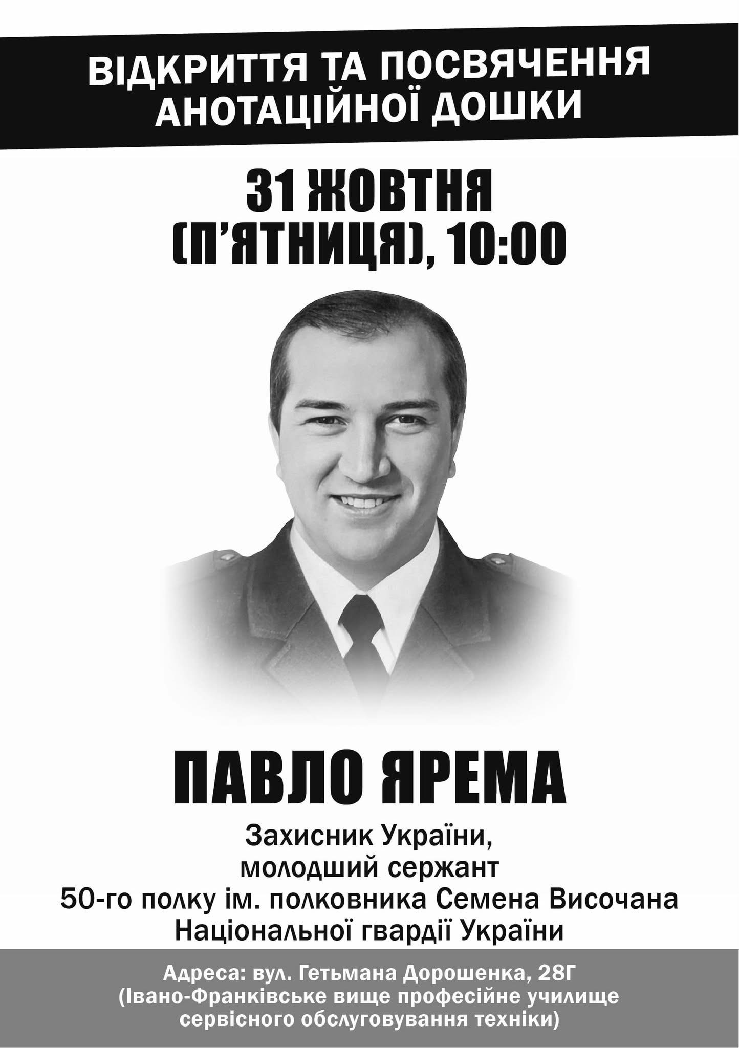 Павло навчався в Івано-Франківському вищому професійному училищі сервісного обслуговування техніки. Саме на фасаді училища завтра буде відкрито пам’ятну дошку у його честь.