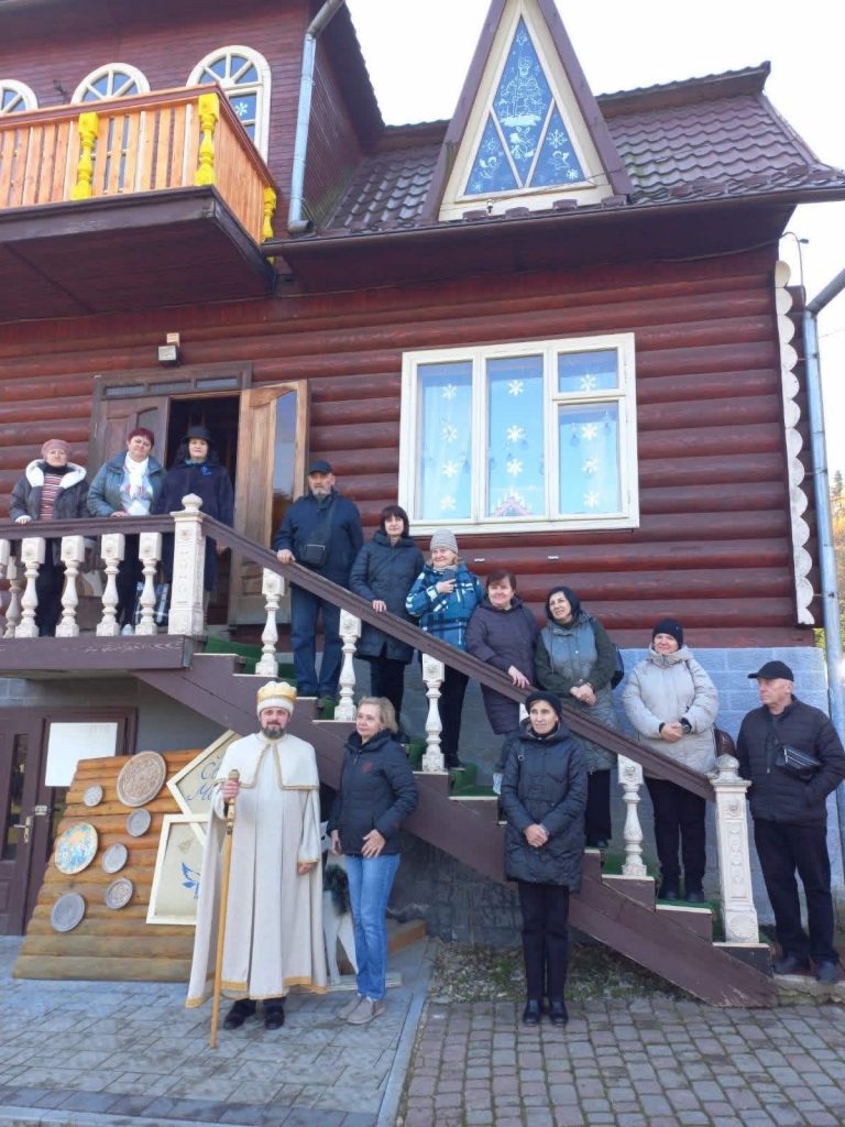 Першою зупинкою став Маєток Святого Миколая, де учасники оглянули кімнату-музей новорічної іграшки, світлицю та майстерню Святого Миколая, а також могли придбати символічні сувеніри.