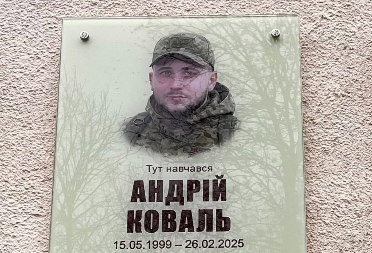 Памʼятний знак встановили на фасаді ліцею № 3, де навчався Андрій Коваль.