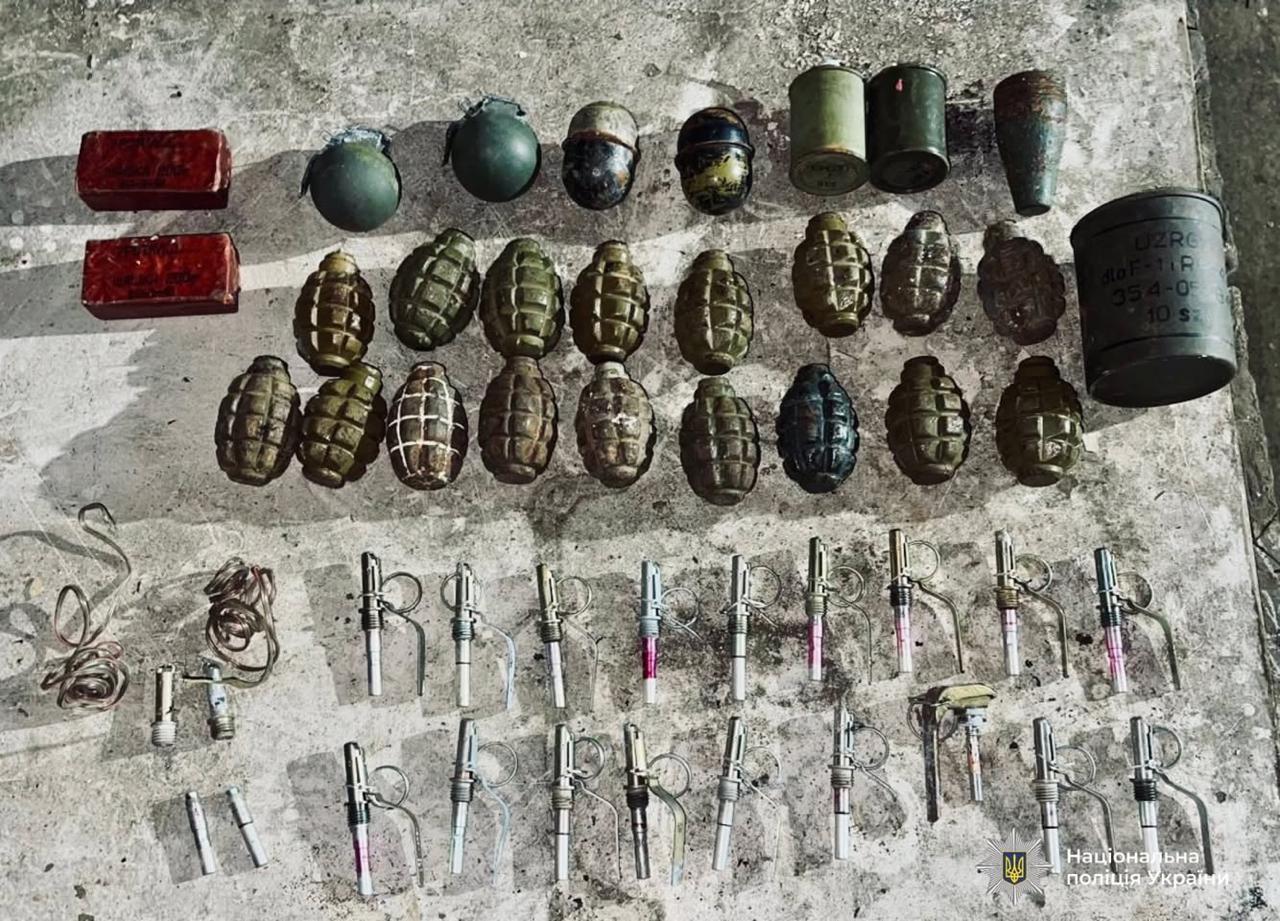 Під час санкціонованих обшуків за місцем проживання та в підсобному приміщенні правоохоронці виявили та вилучили десятки корпусів гранат «Ф-1», М67, РГ-42, «РГД-5», М50, запали типу УЗРГМ та «JVA 1634», а також тротилові шашки.