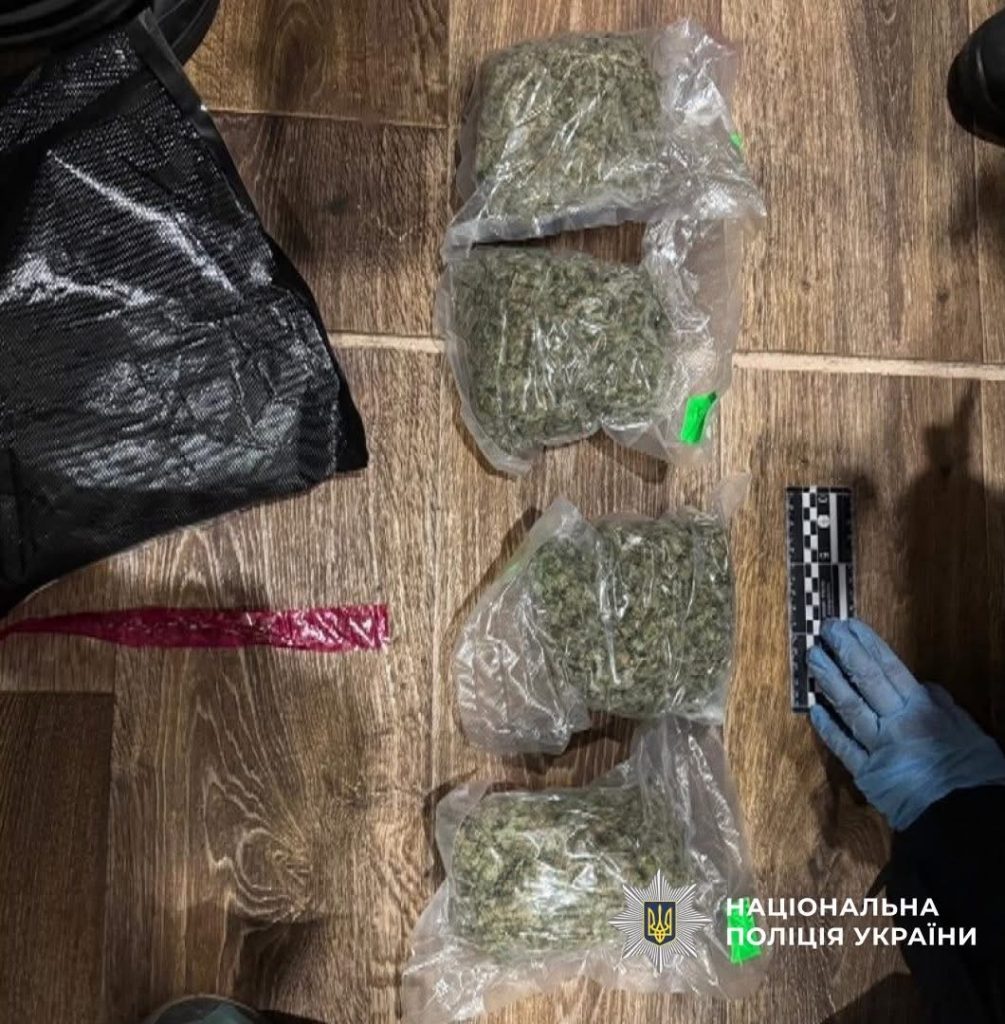 Під час обшуку за місцем його проживання поліцейські вилучили близько кілограма подрібненого канабісу, ваги, обладнання для фасування, пристрої для вживання наркотиків, мобільні телефони та понад 300 тис. грн, які він отримав від збуту.
