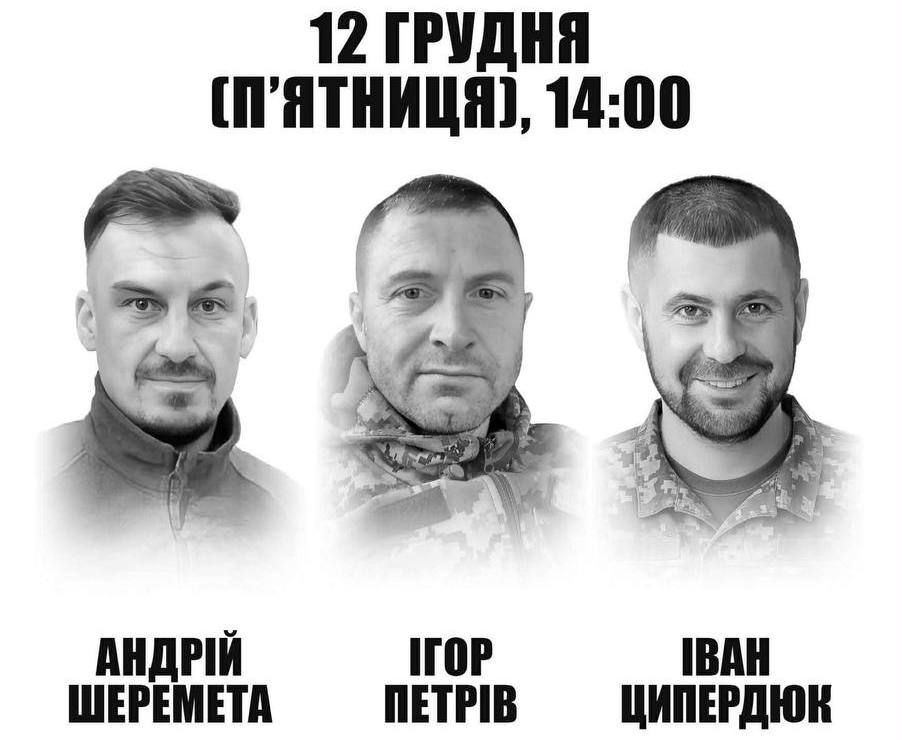 12 грудня в Івано-Франківську відкриють анотаційні дошки на честь загиблих захисників України — Андрія Шеремети, Ігора Петріва та Івана Ципедрюка.