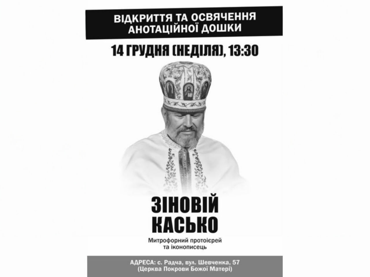У неділю, 14 грудня, о 13:30 у селі Радча відкриють пам’ятну дошку о. Зіновію Каську.
