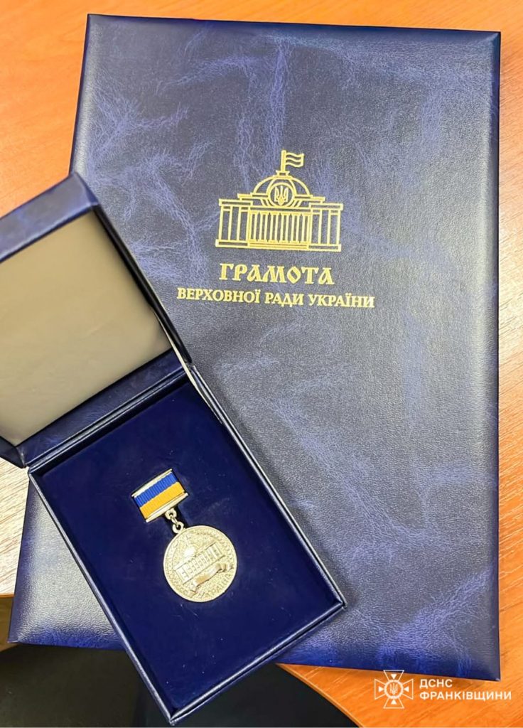 Голова ДСНС України Андрій Даник вручив Грамоту Верховної Ради України прикарпатському рятувальнику — старшому лейтенанту служби цивільного захисту Владиславу-Павлу Свериді. Він є провідним фахівцем з медичного забезпечення та медико-біологічного захисту ГУ ДСНС в Івано-Франківській області