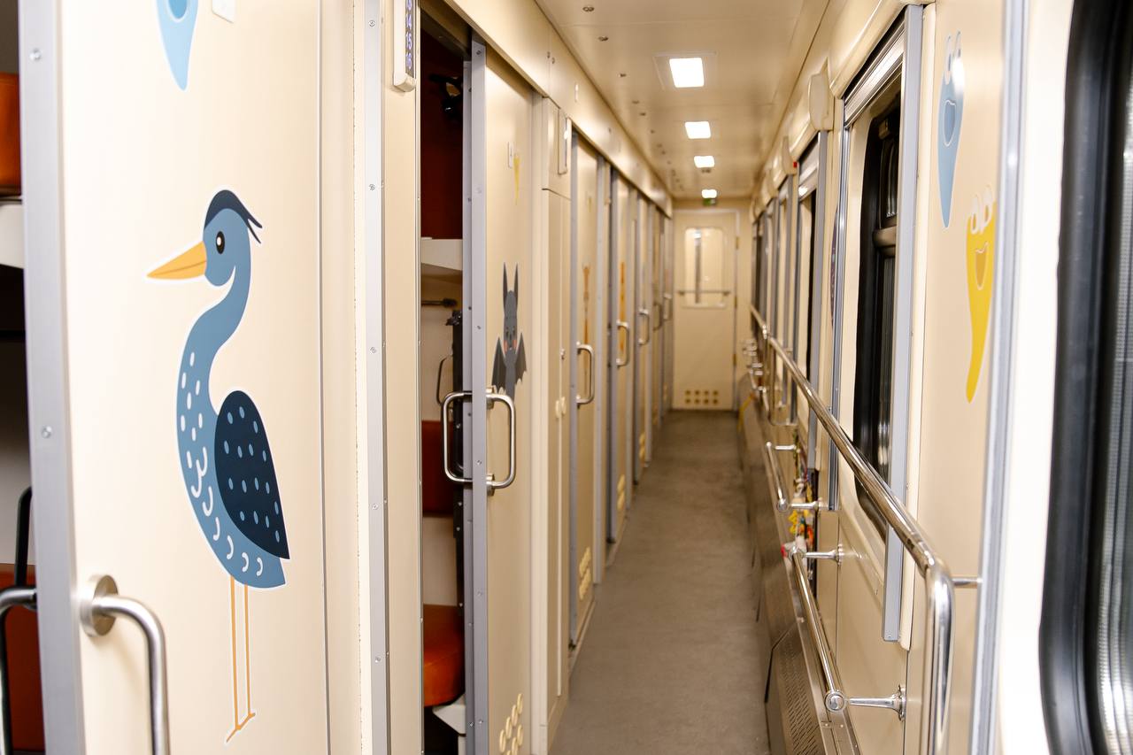 Нові вагони мають унікальний дизайн: кожне купе присвячене окремому місцю в Україні та знайомить дітей з природою й історією різних регіонів. Окрім цього, вагони повністю облаштовані для подорожей з малечею — тут є дитяча постіль, пеленальні столики, манежі, нагрівачі для пляшечок, сходинки та накладки для вбиралень, а також розвивальні ігри, книжки шрифтом Брайля та розмальовки.