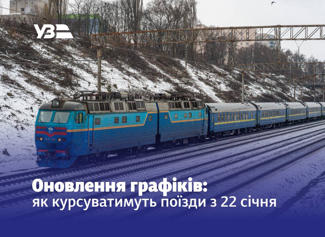 З 22 січня в Україні набирає чинності оновлений графік руху Укрзалізниці. 118 поїздів далекого сполучення та понад сотня регіональних і приміських вирушатимуть за новим розкладом.