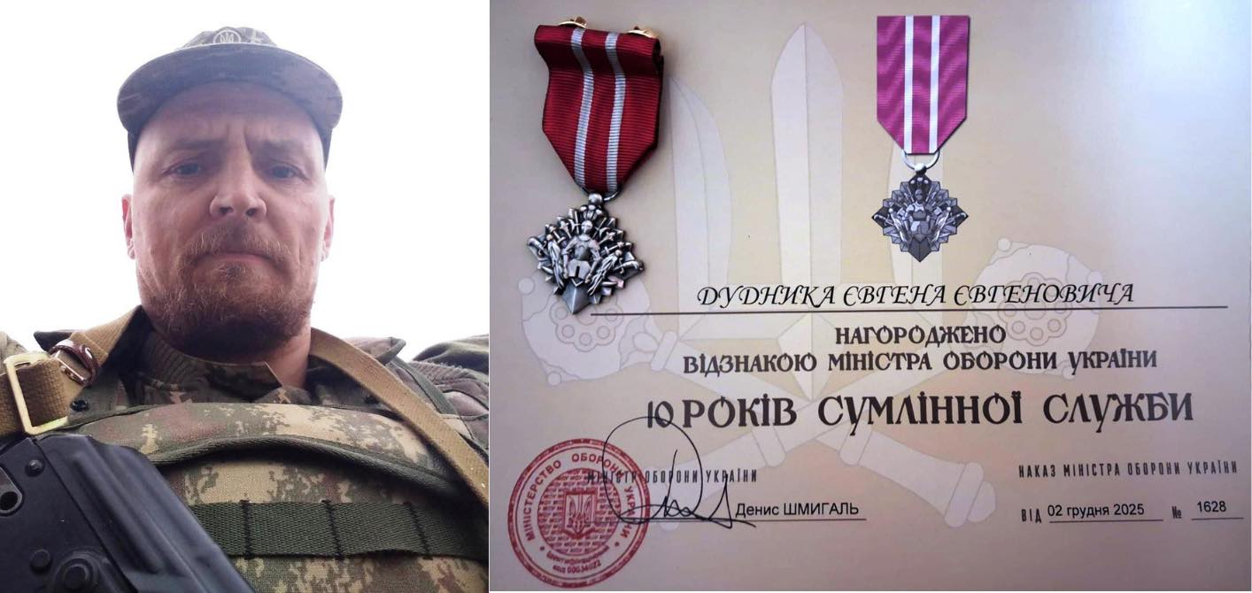 Євгена Дудника, військовослужбовця Збройних сил України з Тлумача Івано-Франківської області, відзначили нагрудною відзнакою «10 років сумлінної служби» за наказом Міністра оборони України. Про це інформує Івано-Франківський центр комплектування та соціальної підтримки.