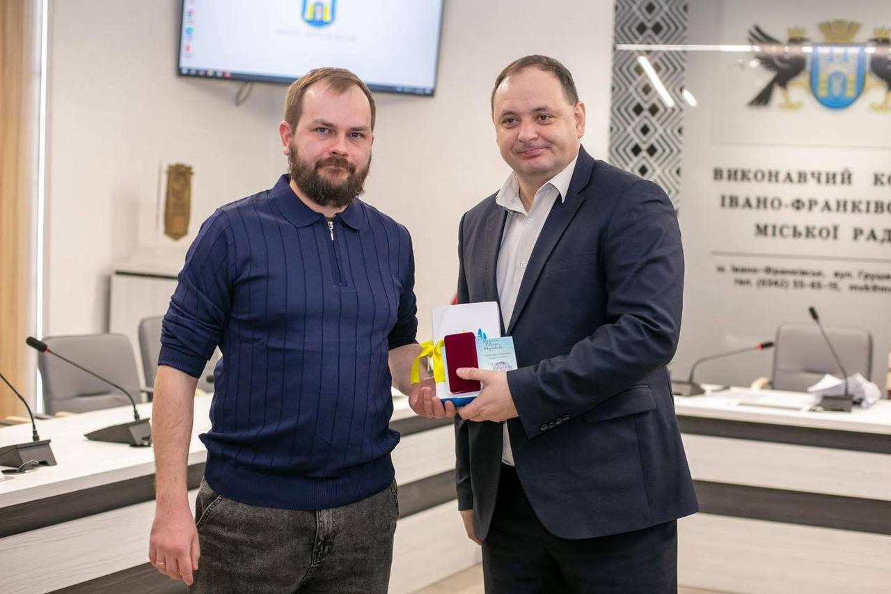 Міський голова особисто вручив відзнаку «За честь і звитягу» Євгену Королю, працівнику департаменту благоустрою, який захищав Україну у складі 80-ї окремої десантно-штурмової бригади.