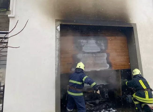 На місці рятувальники виявили, що горить легковий автомобіль та гараж, розташований у двоповерховому житловому будинку, площа загоряння склала близько 20 м².