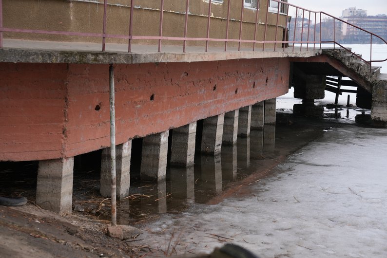 В Івано-Франківську через аварійний стан головного шлюзу з міського озера неконтрольовано витікає вода. Станом на 3 березня рівень водойми знизився приблизно на 60 сантиметрів, а берегова лінія подекуди відступила на п’ять-шість метрів.