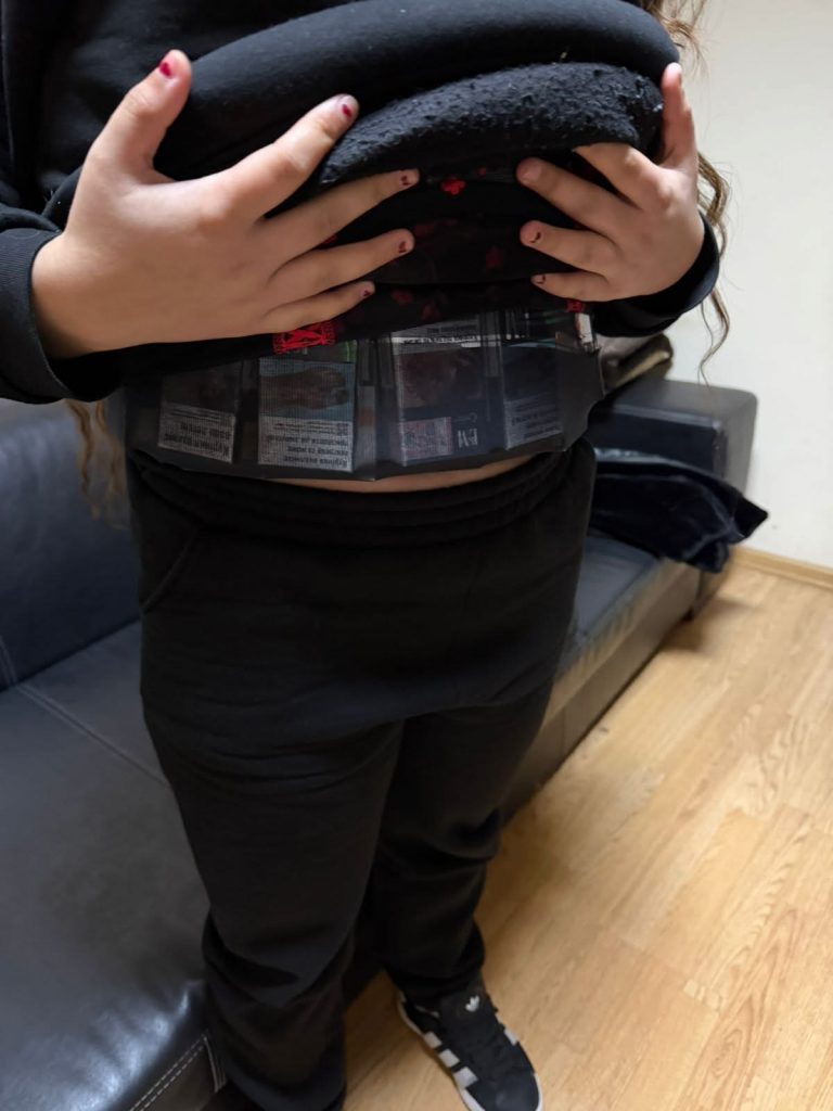34-річна закарпатка долучила до незаконної оборудки знайому шістнадцятирічну дівчину. Вони прямували до Угорщини легковим автомобілем. Обидві причепили на себе під одягом стрічки, до яких приклеїли пачки з тютюновими виробами без марок акцизного податку України.