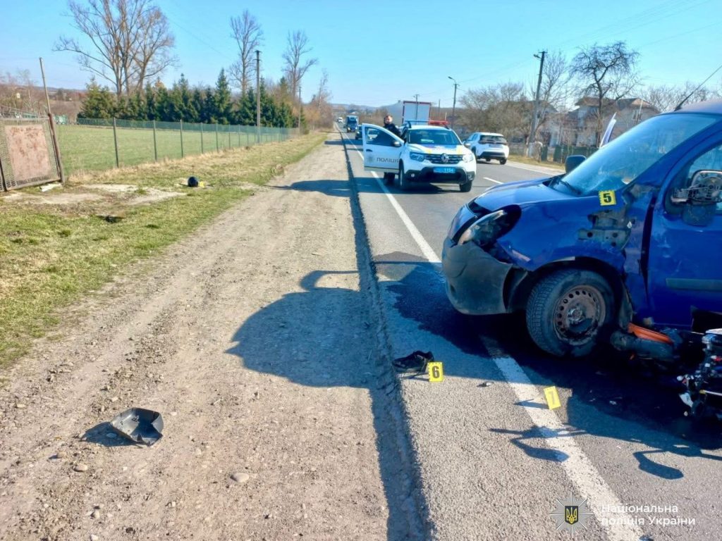 Аварія трапилася 14 березня близько 13:20. За попередніми даними слідства, зіткнулися автомобіль Renault Kangoo та мотоцикл KMT.