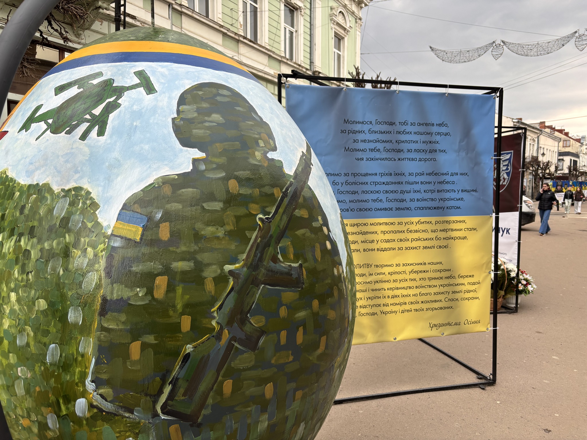 У Коломиї, на вулиці Чорновола, поруч із портретами полеглих та померлих Захисників України, встановили особливу писанку як символ вдячності громади за їхню відвагу. Про це повідомив міський голова Коломиї.