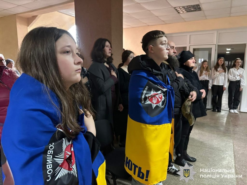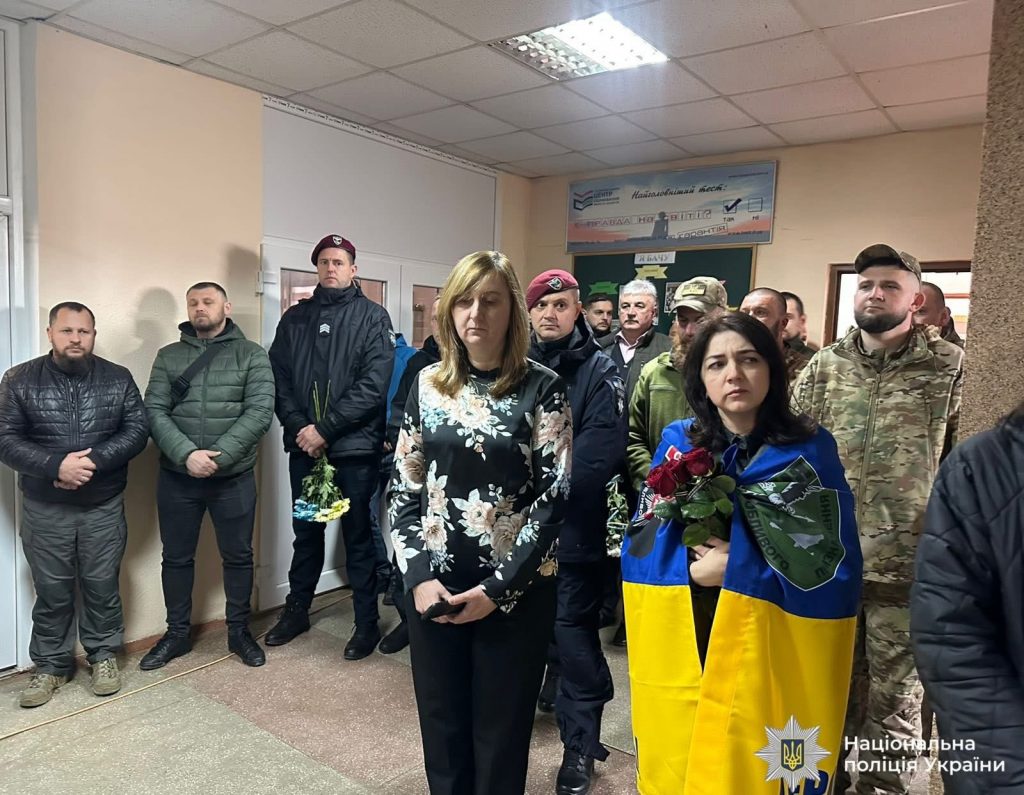 Під час заходу командир роти поліції особливого призначення Василь Санітович передав дружині загиблого пам’ятний жетон — як символ відданості службі та вдячності за його подвиг.