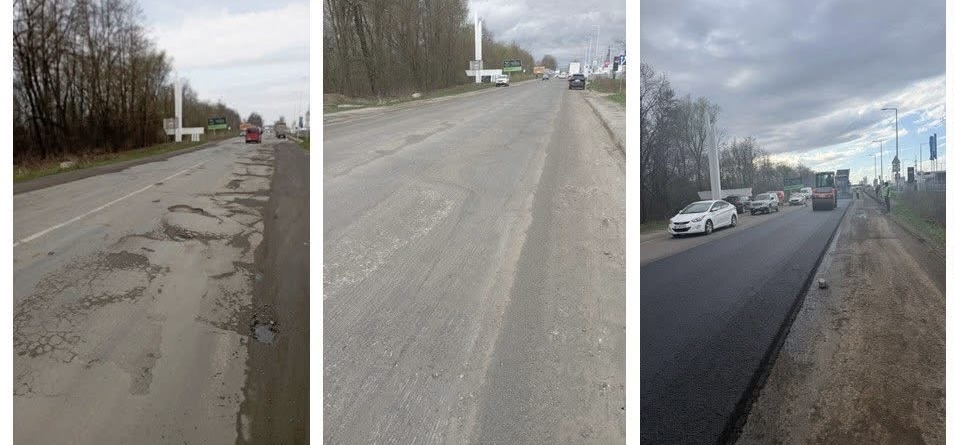 Розпочато ліквідацію ямковості локальними картами на ділянці цієї ж дороги. Зараз проводять підготовчі роботи перед влаштуванням нового шару асфальтобетону.