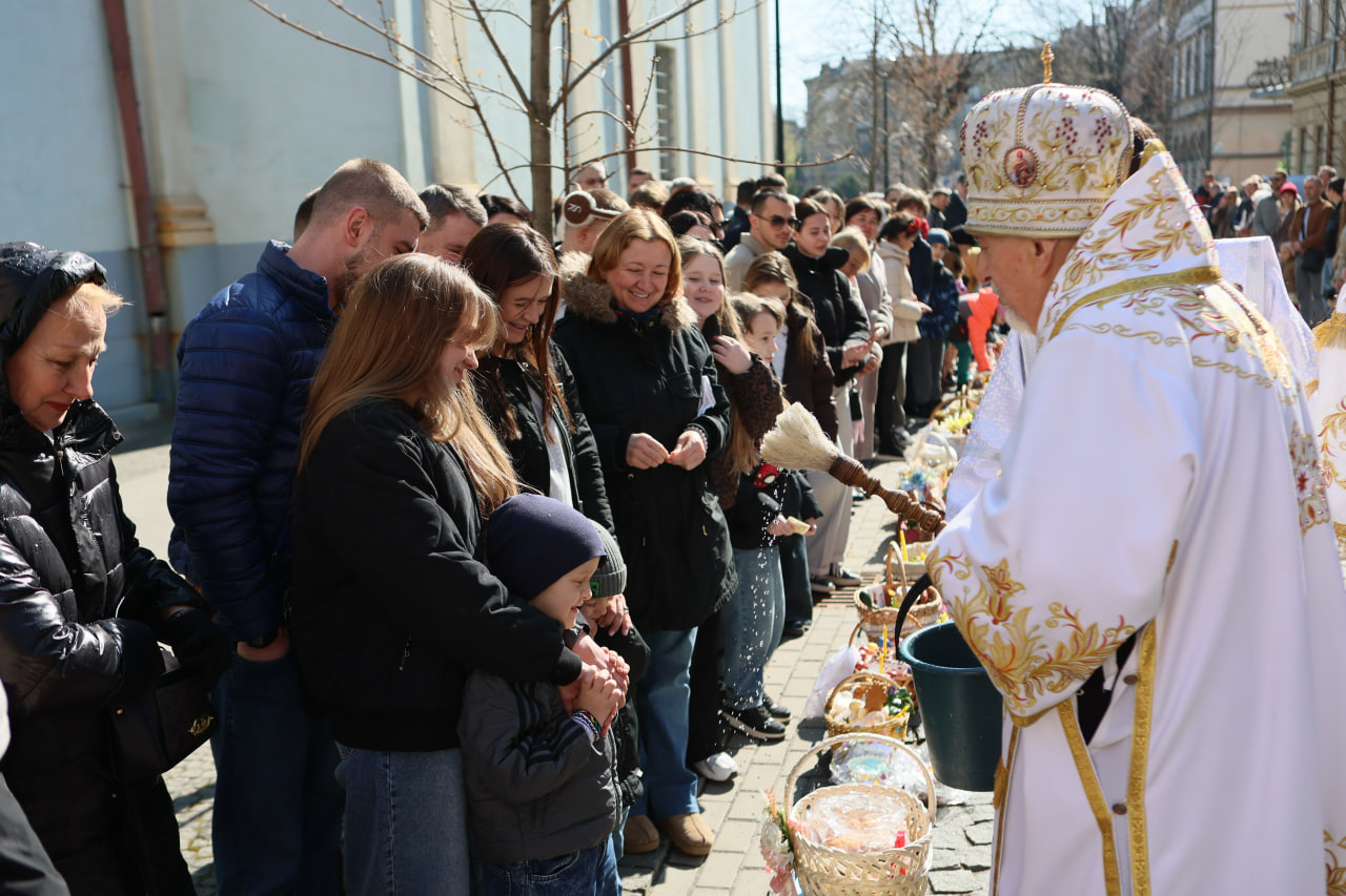 Попри прохолодну погоду, люди приходили цілими родинами, багато хто — з дітьми та у вишиванках. У кошиках традиційно несли паски, писанки, м’ясні вироби та інші великодні страви.