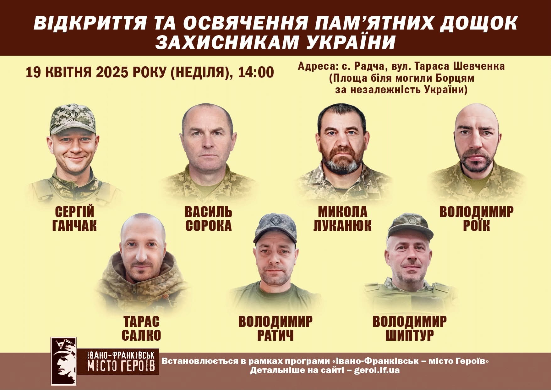 У селі Радча цієї неділі, 19 квітня 2026 року, відбудеться відкриття та освячення пам’ятних дощок українським воїнам, які віддали життя за незалежність України.