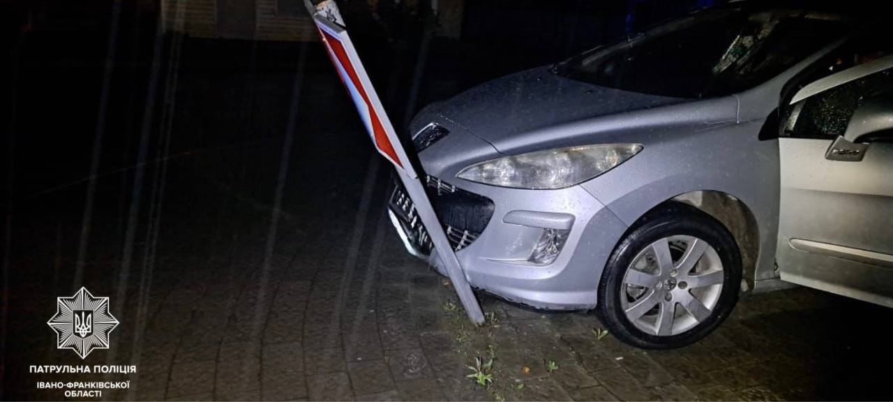 За попередніми даними, водій автомобіля Peugeot не обрав безпечної швидкості, був неуважним та наїхав на дорожній знак. Унаслідок інциденту пошкоджено як транспортний засіб, так і елемент дорожньої інфраструктури.