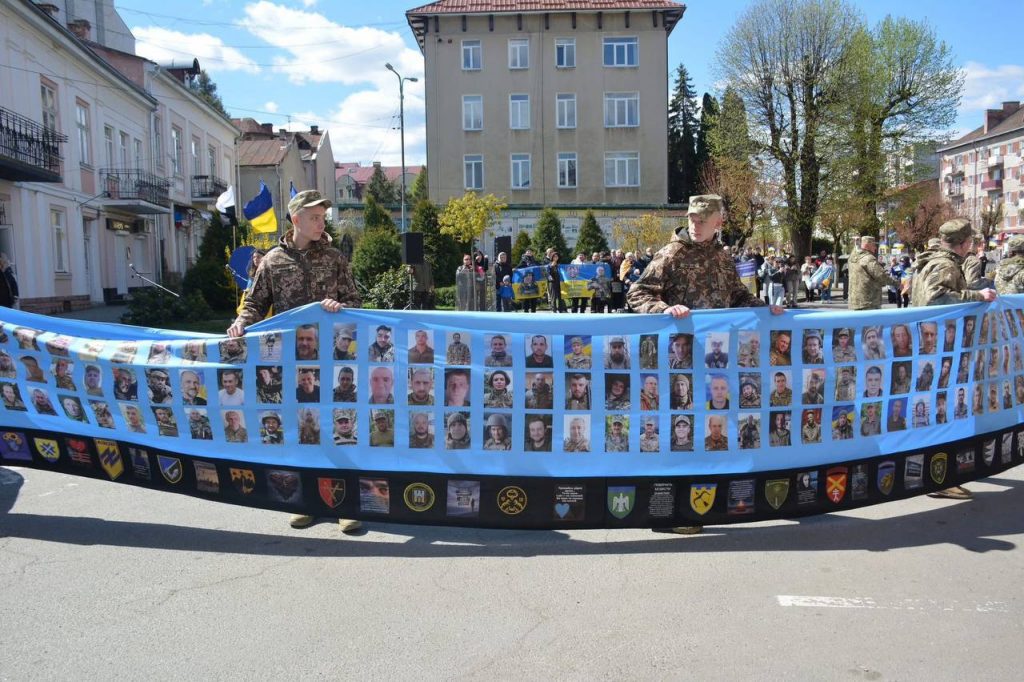 Поруч із інсталяцією розгорнули «Прапор Надії та Героїв Прикарпаття» довжиною 40 метрів. На ньому — світлини воїнів, доля яких досі залишається невідомою.