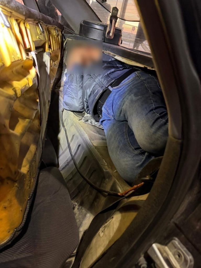 Під час огляду легкового автомобіля марки Audi прикордонники виявили 39-річного жителя Львівщини, який переховувався у непризначеному для перевезення місці – між задніми пасажирськими сидіннями та багажним відділенням.