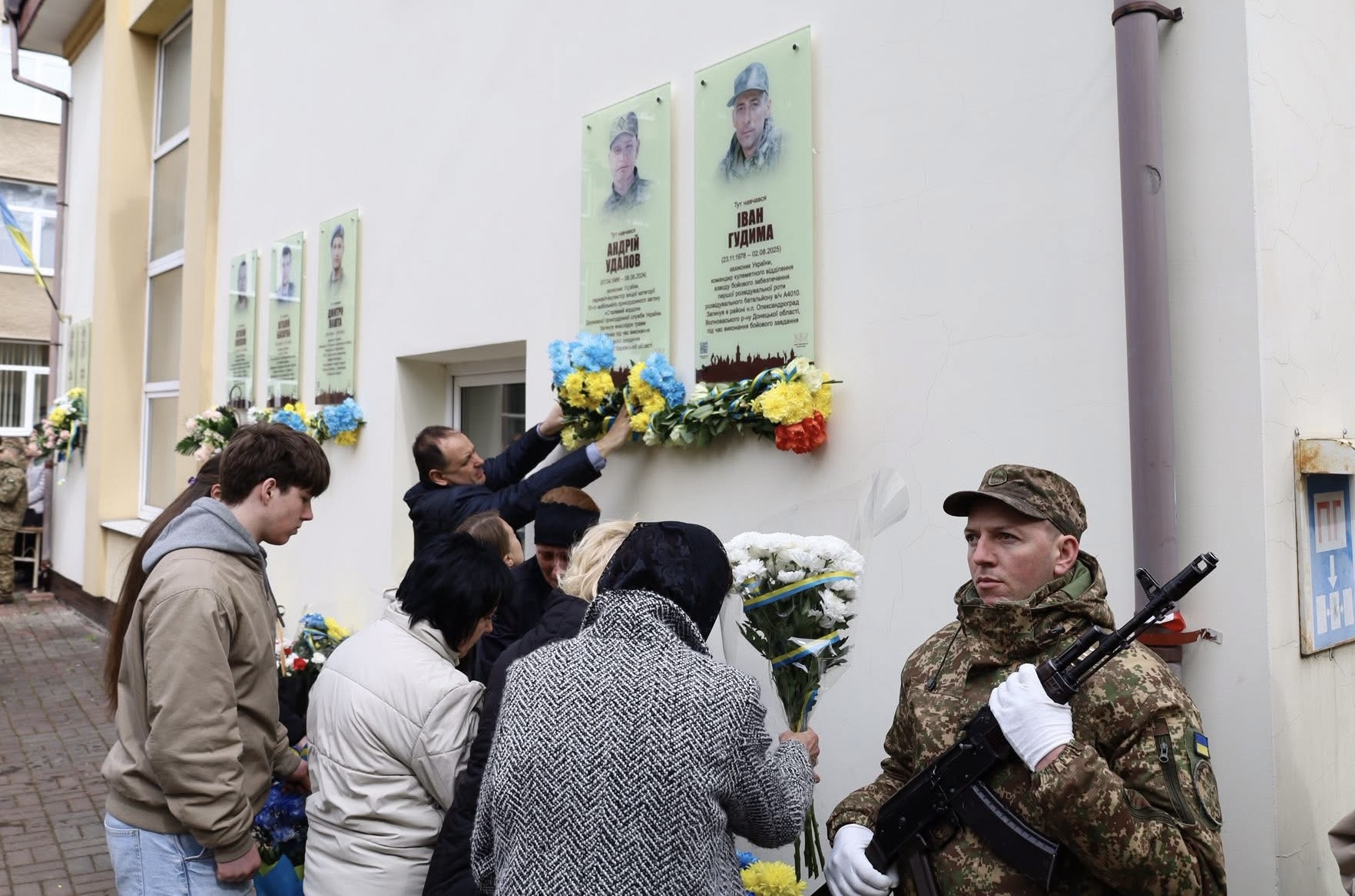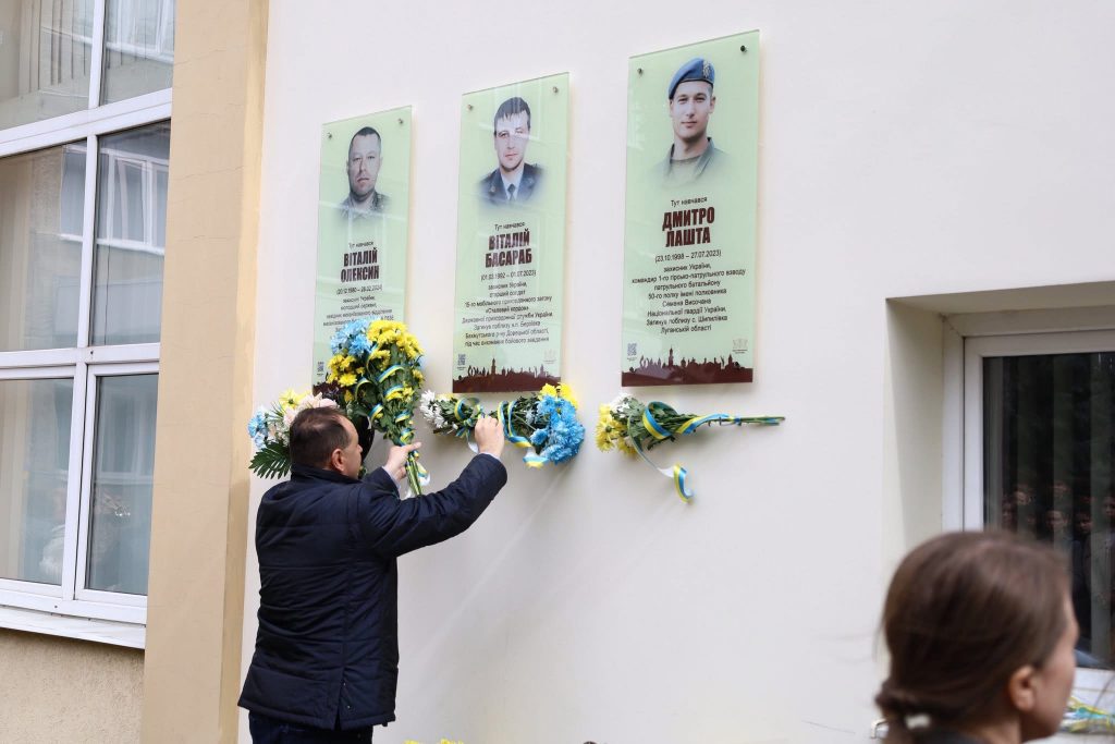 В Івано-Франківську на фасаді ліцею №11 відкрили та освятили анотаційні дошки чотирьом полеглим військовим — Віталію Басарабу, Дмитру Лашті, Андрію Удалову та Івану Гудимі.
