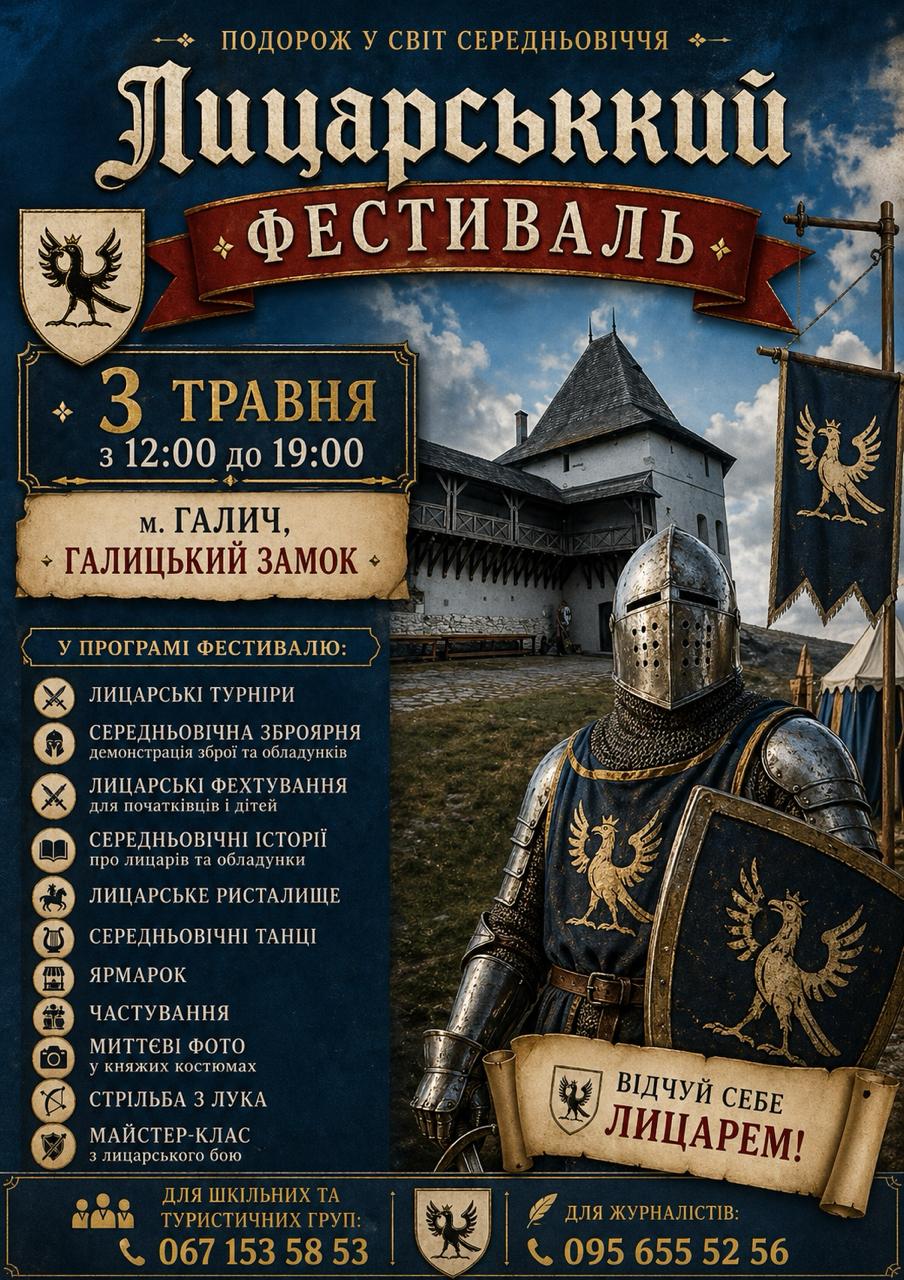 3 травня на території Галицького замку відбудеться «Лицарський фестиваль». Захід триватиме з 12:00 до 19:00.