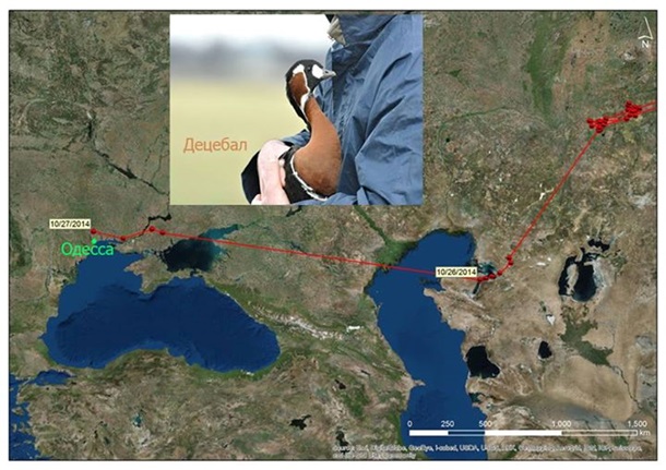 “Ймовірно, зіграв свою роль циклон”, – зазначив Русєв. Переліт з російської Арктики через Казахстан зайняв у казарок більше місяця. За переміщенням птахів фахівці стежили за допомогою супутникового датчика, закріпленого на одному з гусей на прізвисько Децебал. Його спіймали 12 лютого 2014 року біля болгарського озера Даранкулак, і відтоді спостерігають за переміщеннями птаха. Зараз він зі своєю зграєю перебуває під Одесою.